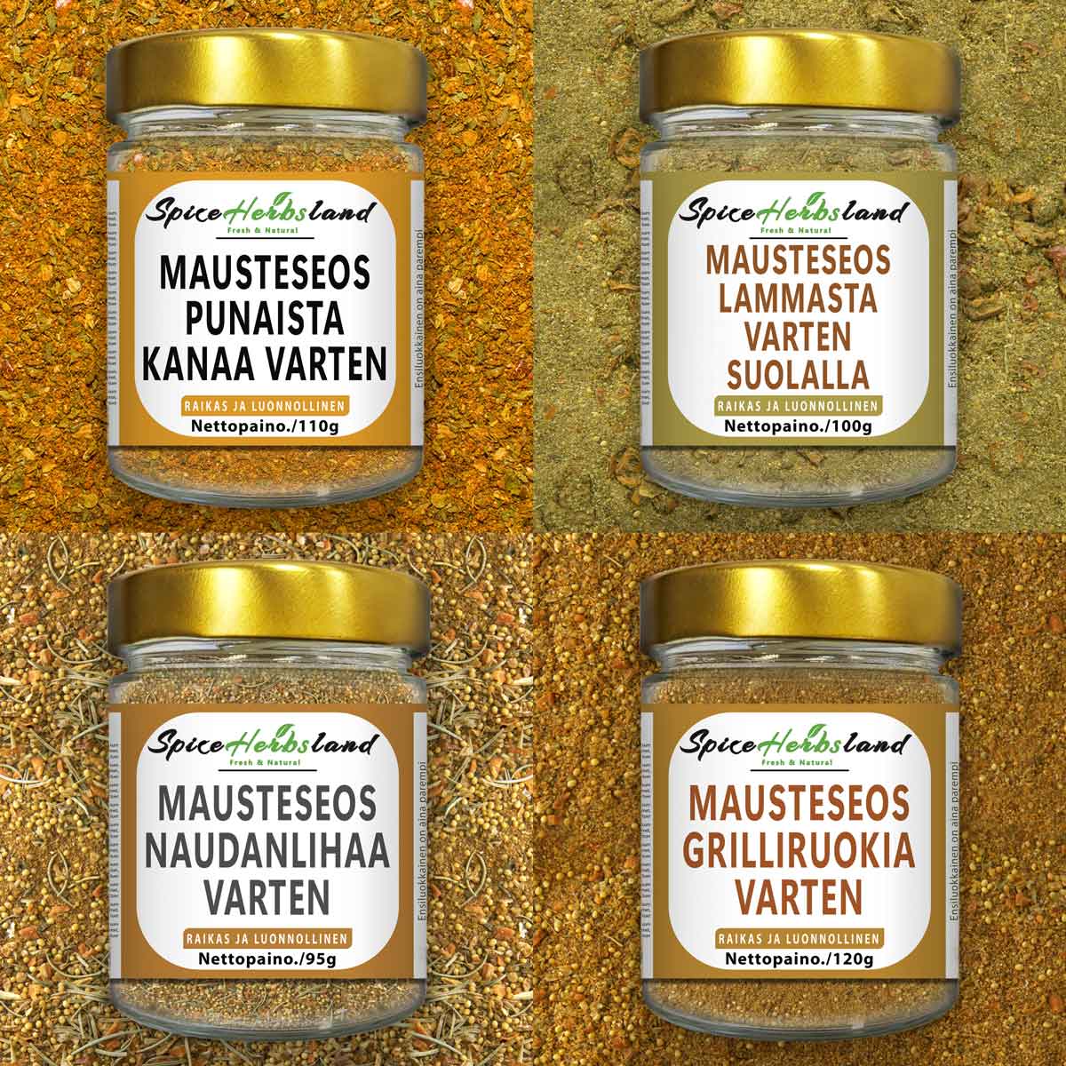 - Grillimausteseos (120g) – Savuinen ja intensiivinen, luotu barbequehen ja grillattuihin ruokiin.
